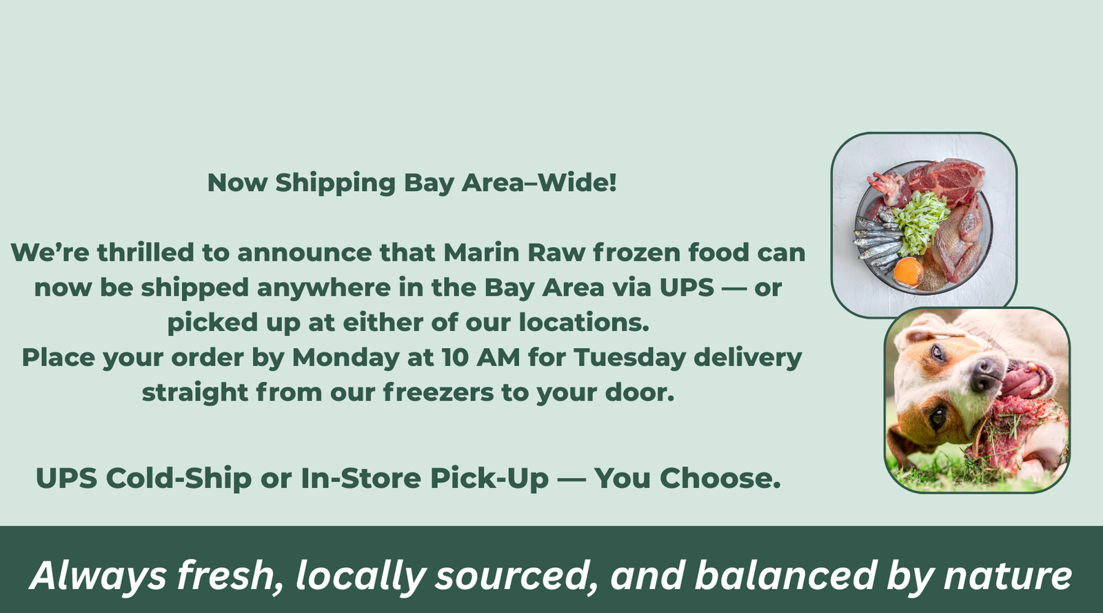 Better nutrition. Local food is better for you. The shorter the time between the farm and your table, the more nutrients fresh food retains. Imported food travels and sits in warehouses for long periods before it gets to your dog’s bowl.