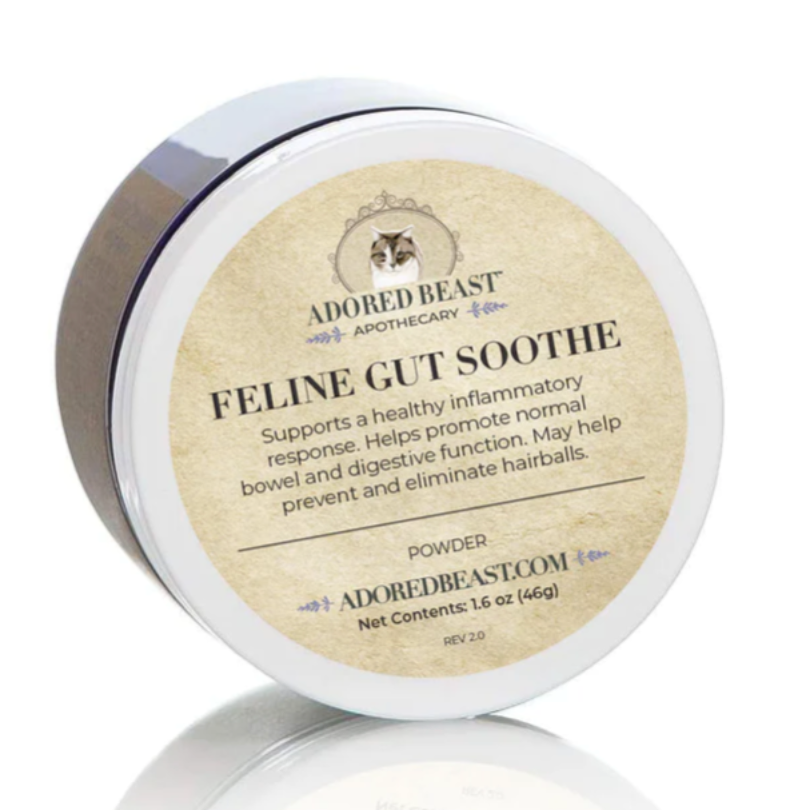 Adored Beast's Feline Gut Soothe is a proprietary blend of anti-inflammatory herbs, prebiotics, and probiotics formulated specifically for cats. It helps soothe and replenish the lining of the bowel, combat unhealthy bacteria, and support a healthy inflammatory response.